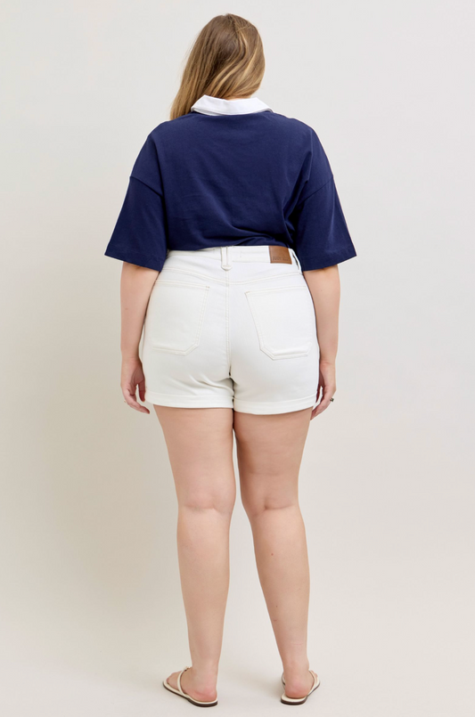 JUDY BLUE WEEKENDER SHORTS in WHITE