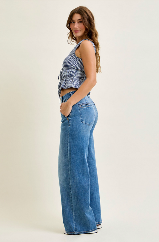 JUDY BLUE HIGH RISE TROUSER STYLE WIDE LEG JEANS - 30" INSEAM